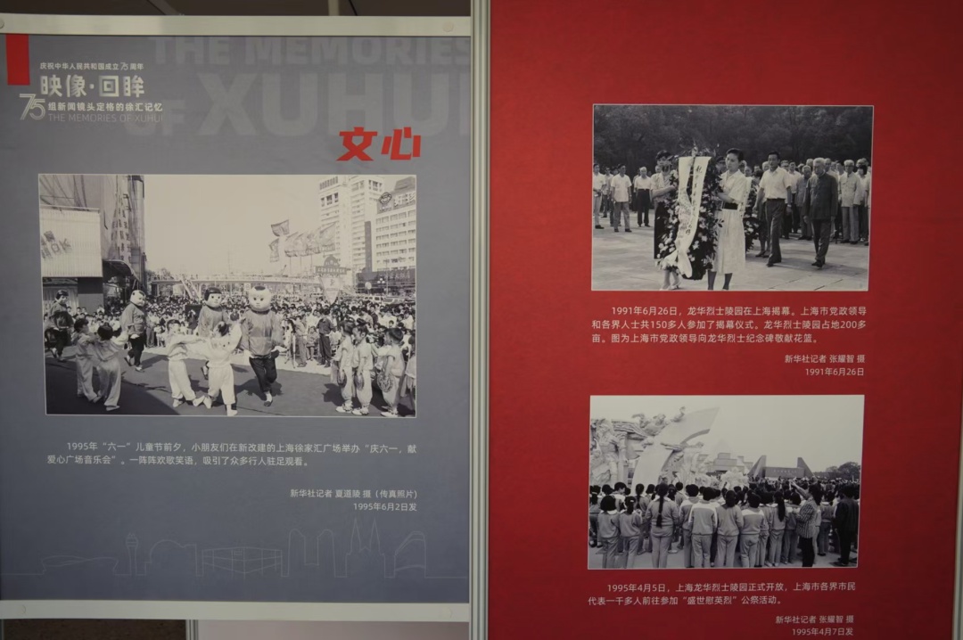 9月29日,“庆祝中华人民共和国成立75周年 映像·回眸——75组新闻镜头定格的徐汇记忆”新闻摄影图片展在徐家汇书院开展。展览从新华社所属中国照片档案馆海量珍藏中精选出75组新闻摄影作品,围绕“蝶变”“创新”“文心”三个篇章排篇布局,从城市更新、科技创新、文化发展等方面,全方位、多维度地呈现新中国特别是进入新时代以来徐汇在城市建设和社会发展中所取得的巨大成就。