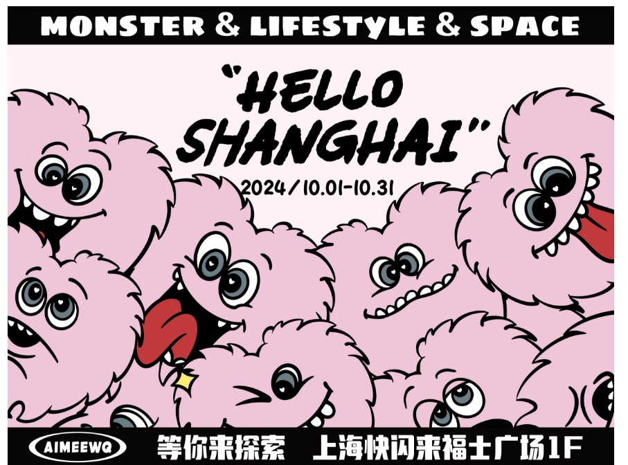 上海来福士广场也不甘示弱,从10月1日至31日,将迎来AIMEEWQ主题快闪展览。展览将展现来自wq217星球的7个特色小怪兽,消费者可以参与丰富的工作坊体验,沉浸在怪兽世界的创意氛围中。