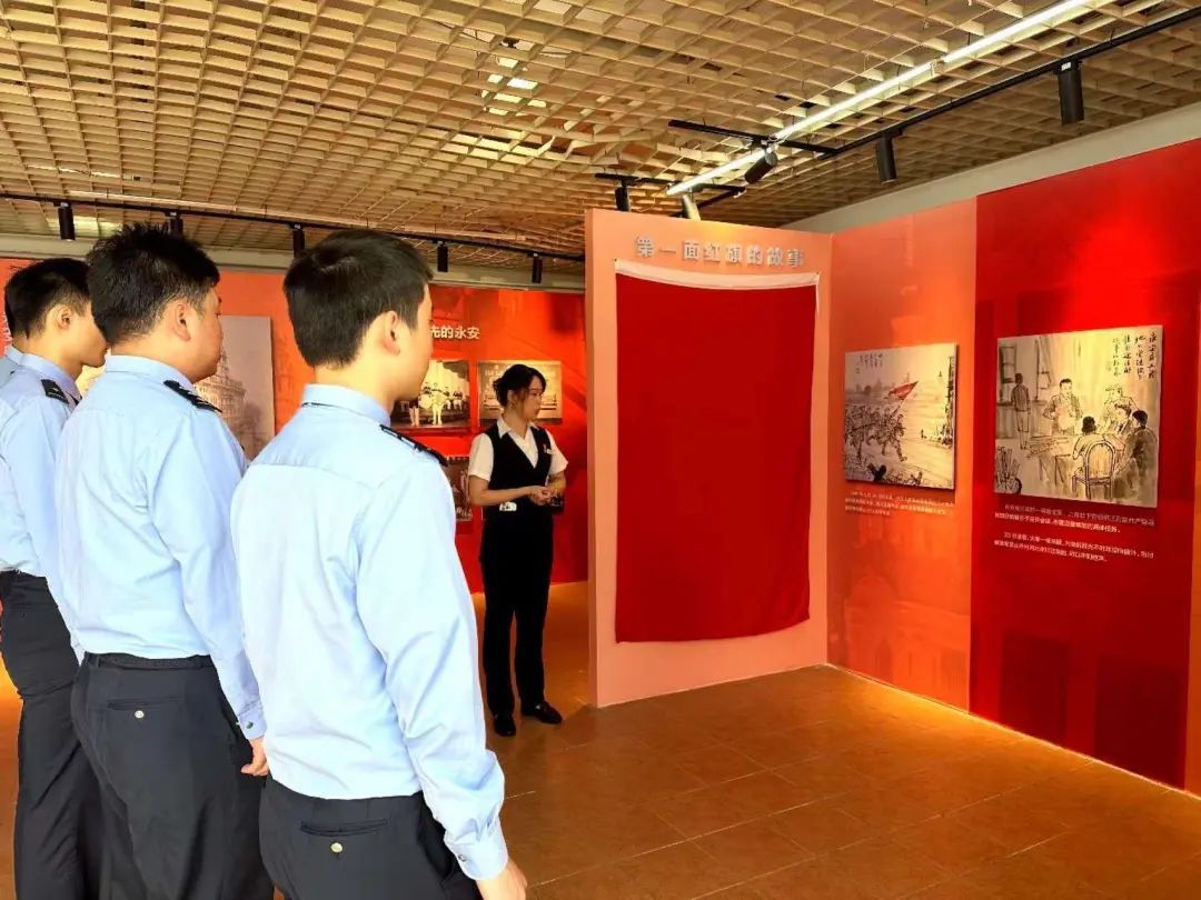 75年过去了,绮云阁已经成为了天台上的红色课堂。青年民警在这里深入学习了解了红色历史,重温南京路上第一面红旗的过往。青年民警们纷纷表示,将更加坚定理想信念,守好这条繁华的“中华商业第一街”,用青春和热血护一方平安。