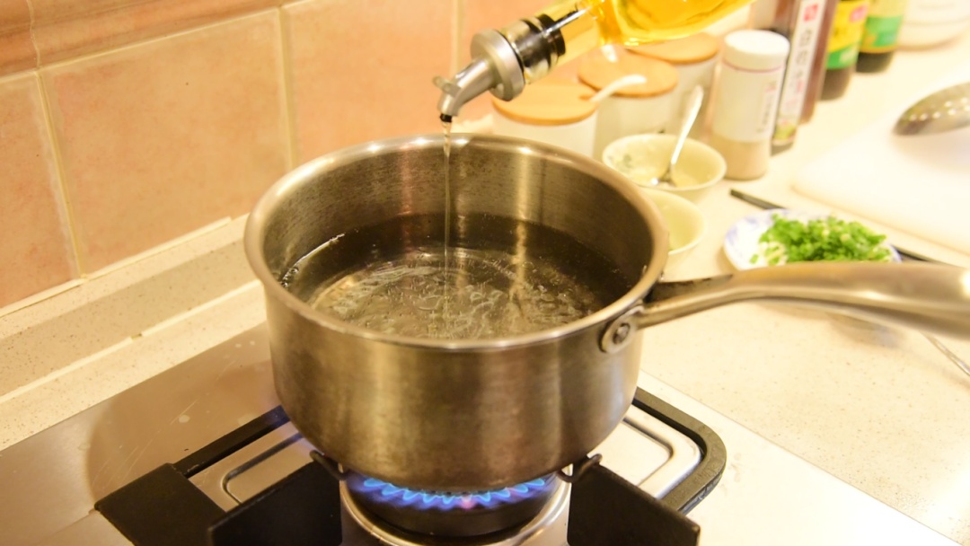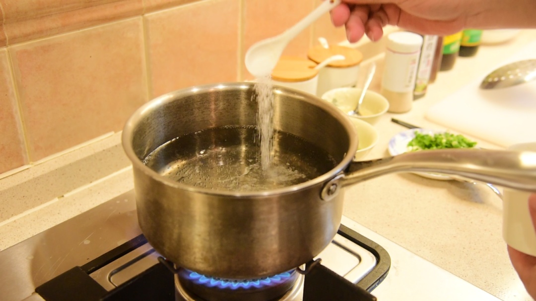 2.锅中水烧开后,滴入几滴食用油及少许食盐。