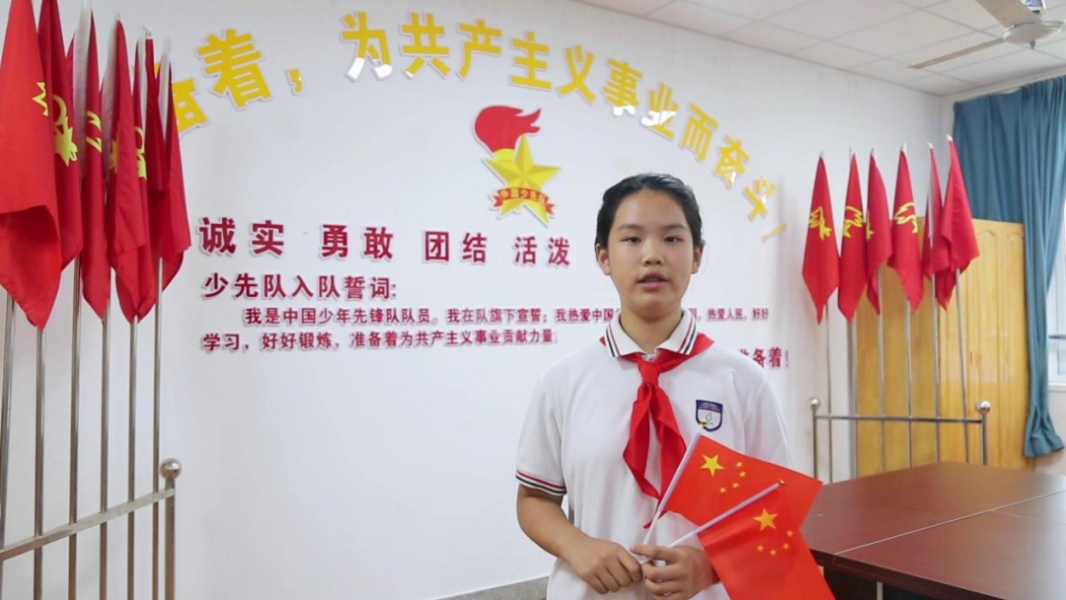 唐佳雯是六灶中学的一名初中生,现担任学校的大队旗手。新中国成立75周年之际,能够作为升旗手亲手将五星红旗缓缓升起,她感言无比激动和自豪。
