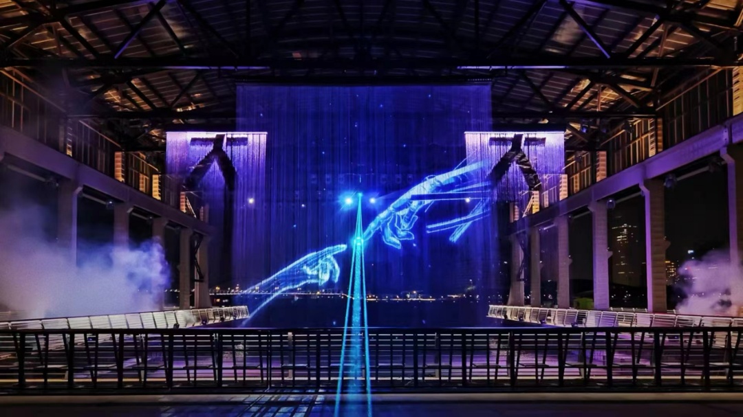 位于西岸梦中心船坞的《时光回廊》水帘投影秀,联合上海人工智能实验室的独家IP形象“书生”,共同打造西岸船坞秀演艺术空间,让市民游客更深入地走进西岸、读懂西岸。运用 “AIGC 大模型” 来演绎光影艺术,从 “垂直硅谷” 到大模型生态社区,用科技构筑起了宏伟的产业蓝图,带领观众领略由人工智能编织的一场跨越虚实界限的视觉艺术盛宴。