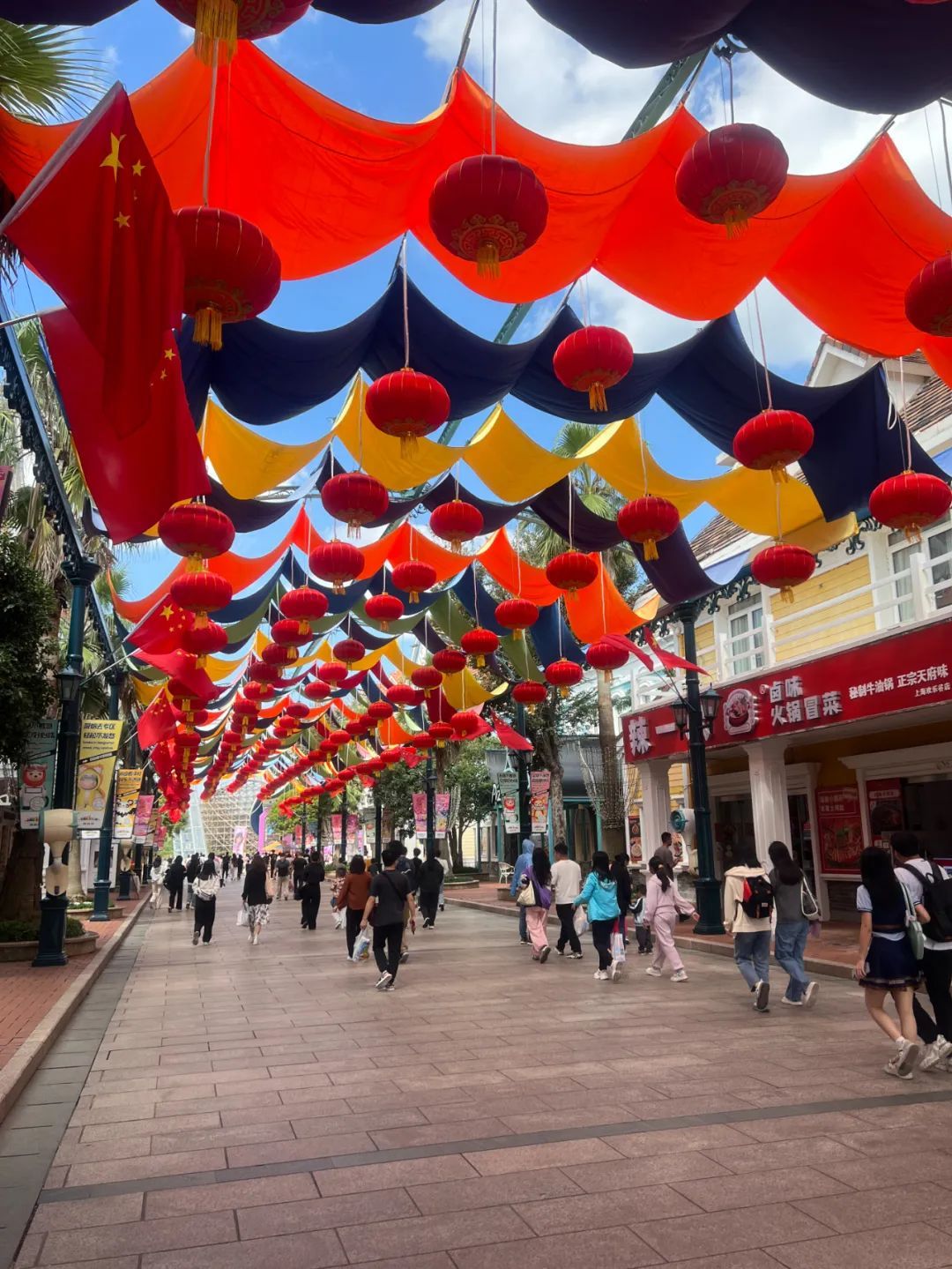 大红灯笼高高挂,五星红旗迎风展,眼下的上海欢乐谷已成为一片红色的海洋,处处洋溢着为祖国庆生的热烈氛围。除了亲子家庭,许多学生也起早赶来,趁着假期放松身心。学生胡宗瑞和朋友们将欢乐谷作为假期游玩的第一站,“很喜欢上海欢乐谷,游玩项目多、设备全,这几天好好玩玩,然后安心学习迎接开学。”还有部分学生从外地赶来,只为体验园内不同的游玩项目和系列活动。“我从杭州赶来,平时就喜欢玩刺激一点的游乐项目,这里有过山车,很好玩。”一名学生游客说道。