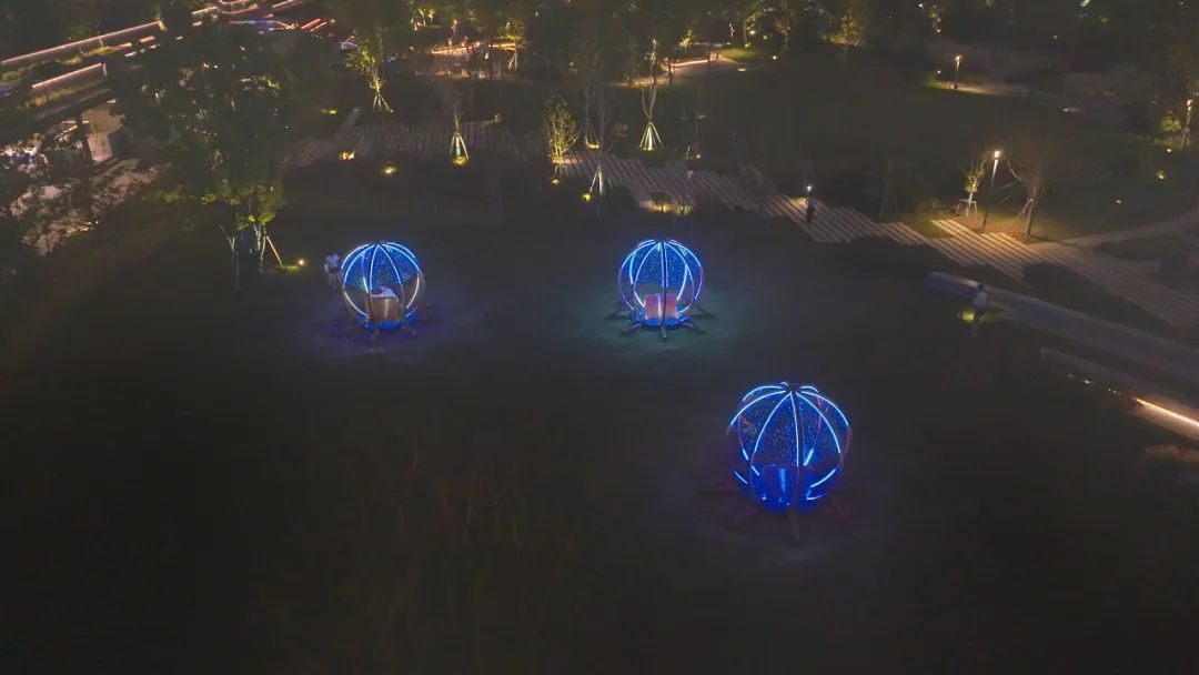 作为节点之一的半马苏河公园,动态光影展现了半马苏河的自然之美,波光粼粼的水面与变幻莫测的光影交相辉映,仿佛大自然本身也在演奏一曲生态赞歌;