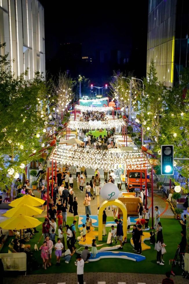 横跨街道的灯串亮起,街巷烟火气升腾。在世博前滩,前滩公园巷项目钱家滩路限时步行街为这个国庆假期带来惊喜。