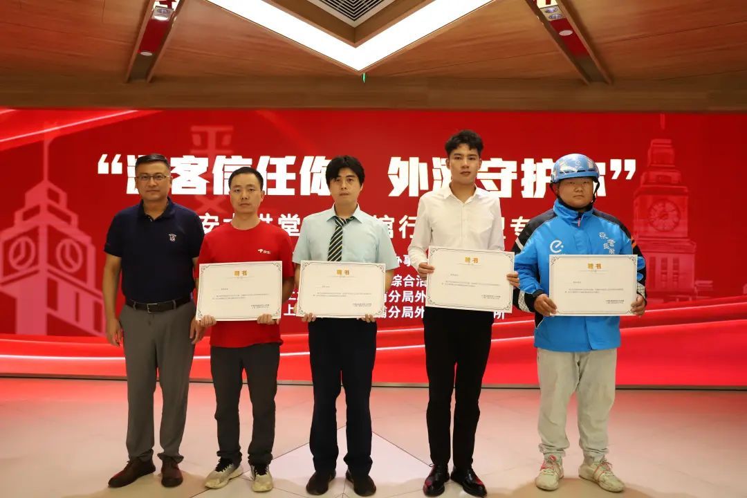 四位“外滩街道宾旅馆行业观察员”收到聘书,他们将继续发挥啄木鸟的监督和提示作用,规范宾旅馆行业的经营与发展。
