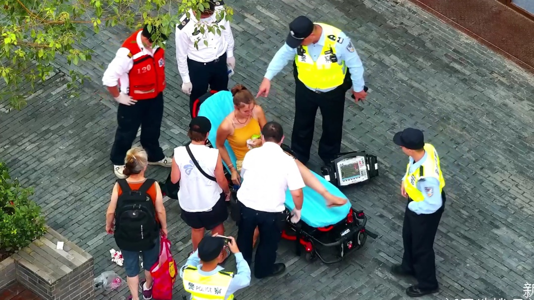 昨天,新天地景区内人潮涌动,热闹非凡。记录仪显示,民警徐时达在巡逻过程中,注意到一名金发碧眼、脸色苍白的外籍女子无力地瘫坐在花坛旁。女子身旁散落着购物袋,周围满是带血迹的纸巾,情况十分严重。徐时达立即用英语询问女子状况,并得知她来自荷兰,是一名刚上大学的学生,此次专程来上海旅游。