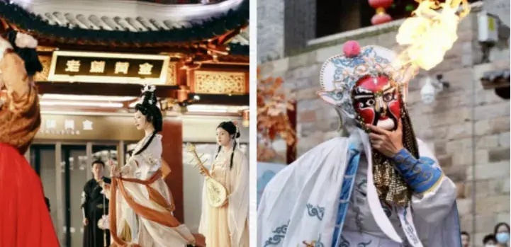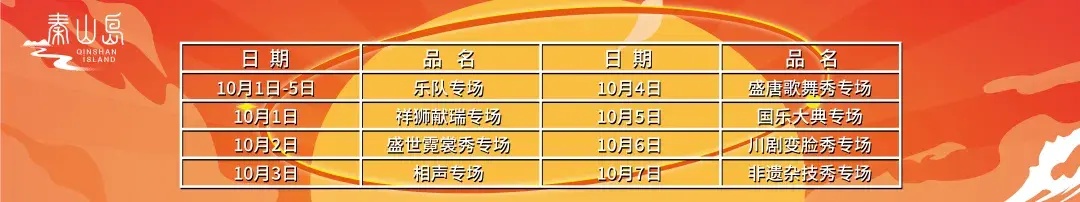 国庆七天,琴岛天籁精彩轮番上演,有“祥狮献瑞”、各式各样精致的汉服造型、相声专场等节目。歌舞《盛世霓裳》将带来视听盛宴、缤纷国宴大赏,还有琵琶、古筝、二胡、竹笛等国风乐器表演节目,非遗戏曲、经典国粹、川剧喷火变脸多个表演活动等。
