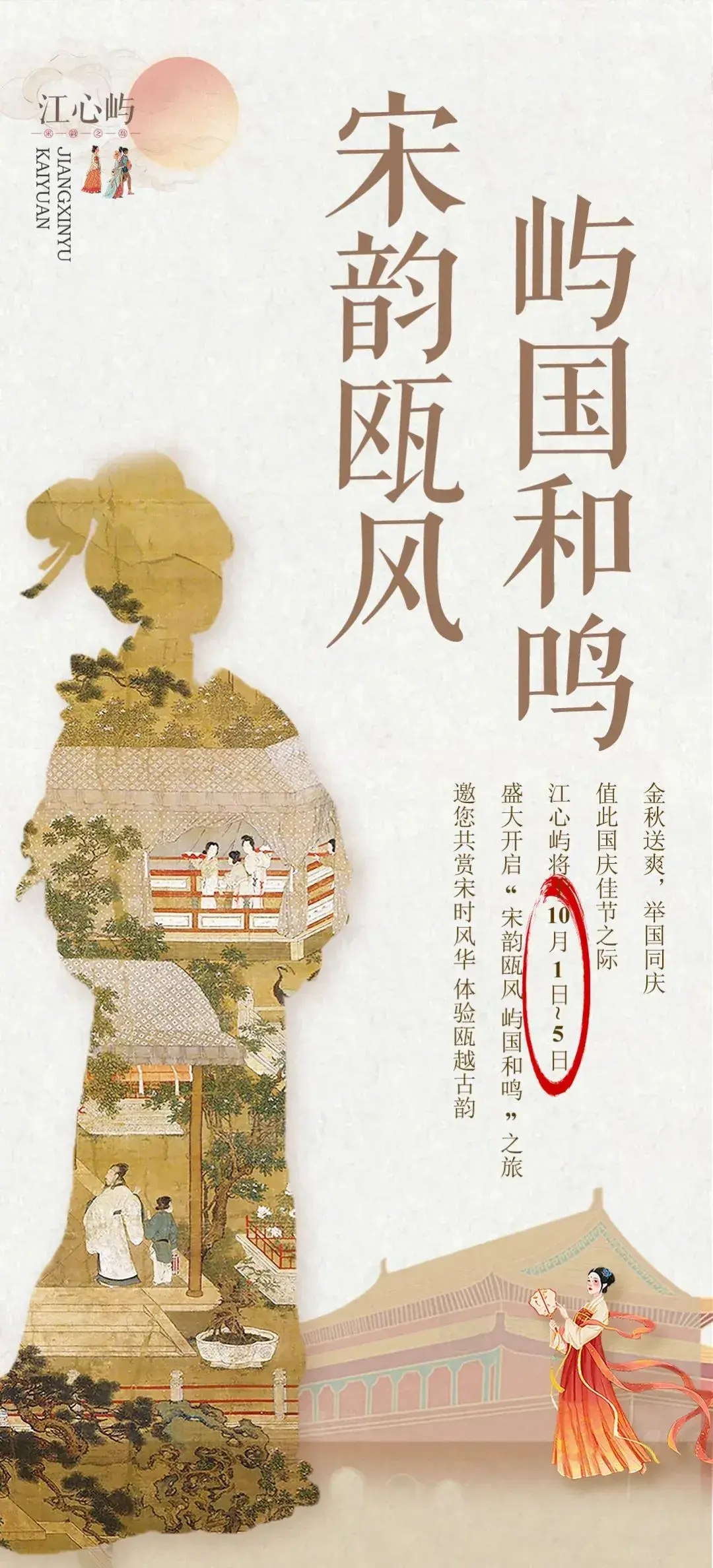 江心屿在国庆开启“宋韵瓯风 屿国和鸣”之旅,在国庆期间穿汉服的游客可以免费游览江心屿景区(门票、船全免票)。在这里,你可以体验一次“古人”见面会。还有古琴、古萧、二胡等传统器乐奏响,共赏绝妙之音。