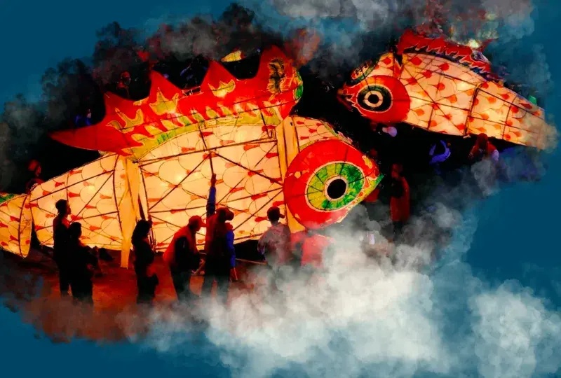 沉浸式国风主题烟花庆典国庆期间奇幻上线。在金山城市沙滩,你可以一次体验赏烟花、看国漫、嬉鱼灯的三重快乐。现场特邀汪满田鱼灯前来助兴,一条条传承百年的鱼灯,顺着历史的长河缓缓游来。