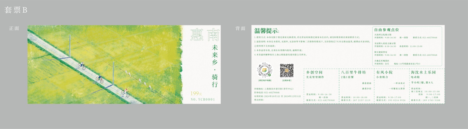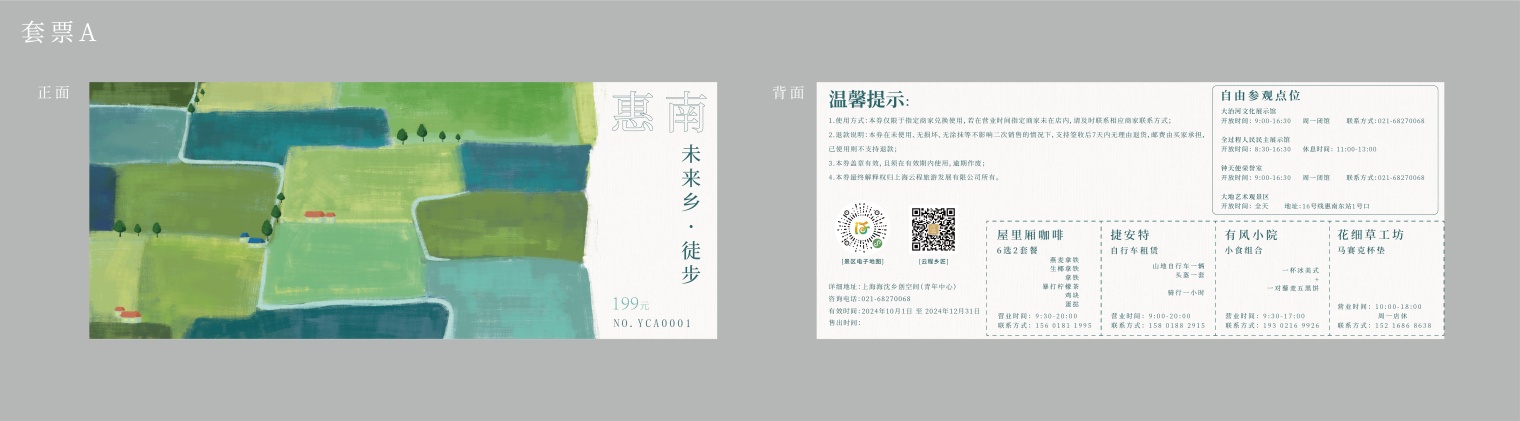 据悉,该畅游套票售价199元,目前已在美团及海沈村乡创空间小程序上线,市民游客可选择购买,凭“入园码”至海沈乡创空间核销,换取纸质票后入园,有效期从2024年10月1日至12月31日。国庆期间,海沈村内正在举办特色惠南镇丰收节,丰富广大市民游客的游玩体验。
