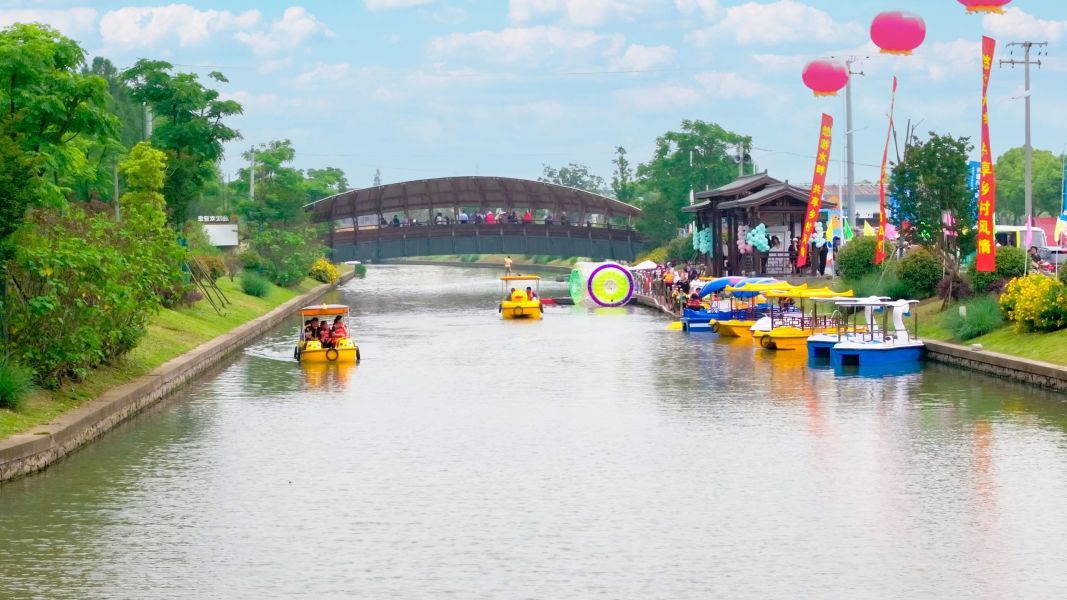 在有风小院稍作休息后,三人来到了心愿桥边的海沈水上乐园,趁着秋高气爽,乘坐游船沿河欣赏被河流环绕的村庄,在诗情画意中畅游,感受沪郊乡土人情。在这里,游客可凭套票兑换半小时四人电动船体验,开启一段水上乡村之旅。