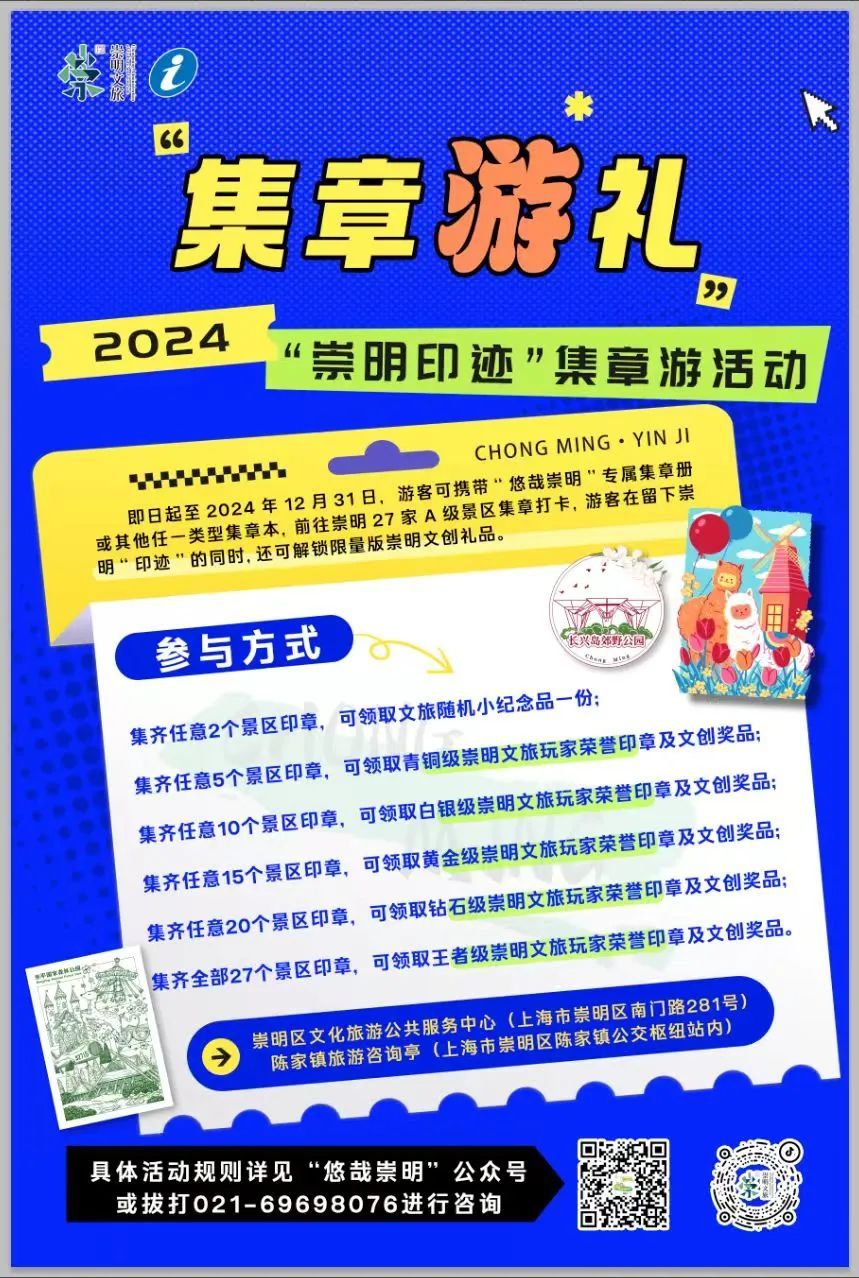 活动期间,来江南三民文化村开展“崇明印记”集章打卡,每人赠送祈福福带一条。同时打卡其他崇明景区,还可解锁更多崇明文创礼品。