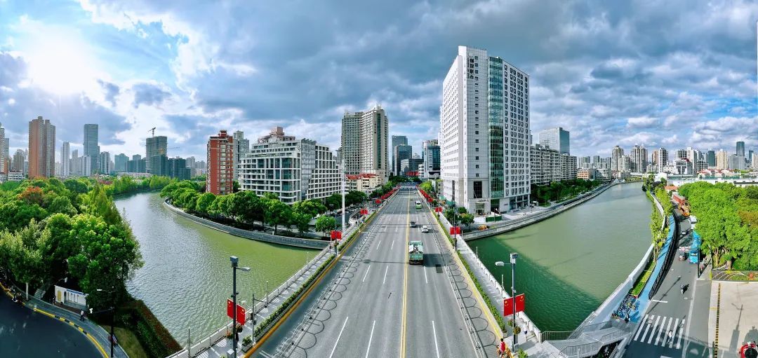 恒丰路桥,跨越苏州河,连接着静安的南北。桥下是粼粼苏河水,桥上是耀目中国红,成为苏州河上一道独特的风景。