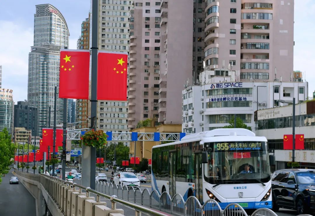国庆佳节至,静安绘新貌。五星红旗迎风舞,每一面都是对祖国的深情颂歌,飘扬在蓝天之下,诉说着不朽的传奇。