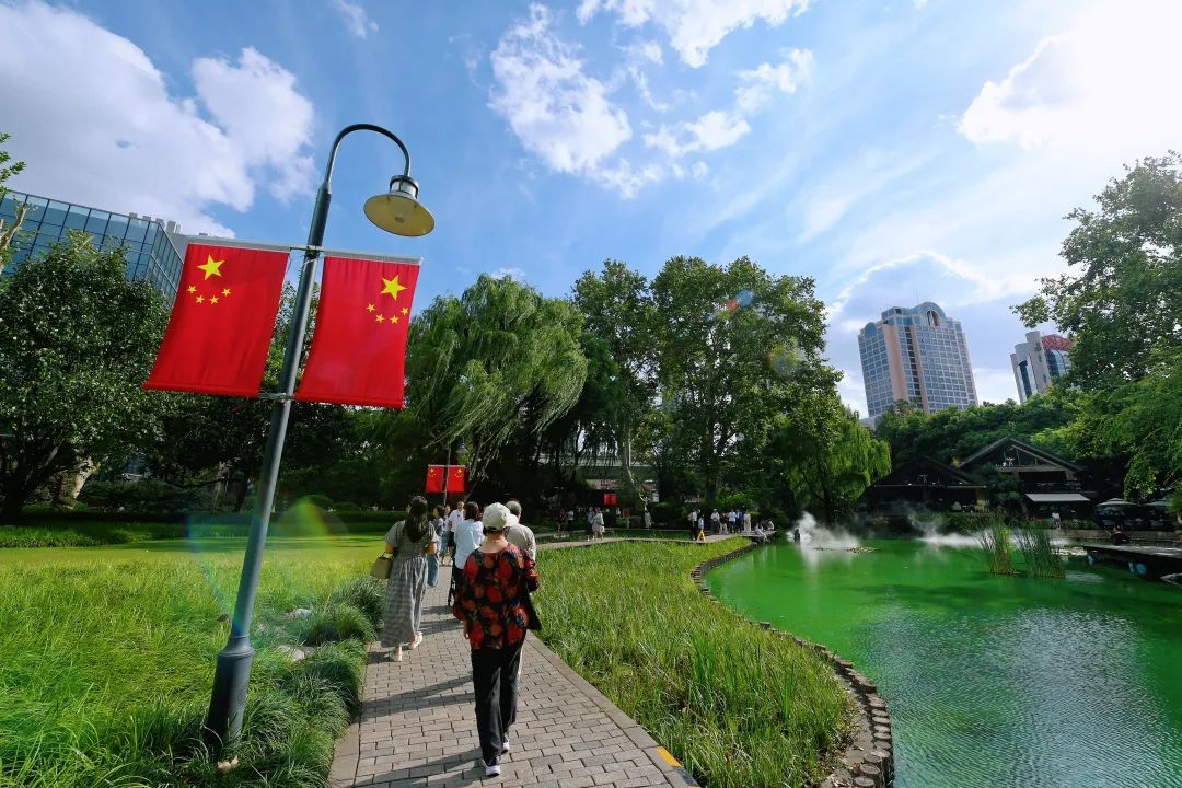 节日里的静安,公园绿地也被装饰一新,让每一个徜徉于此的人都不由自主地放慢脚步,沉醉在这份浓厚的节日氛围中。