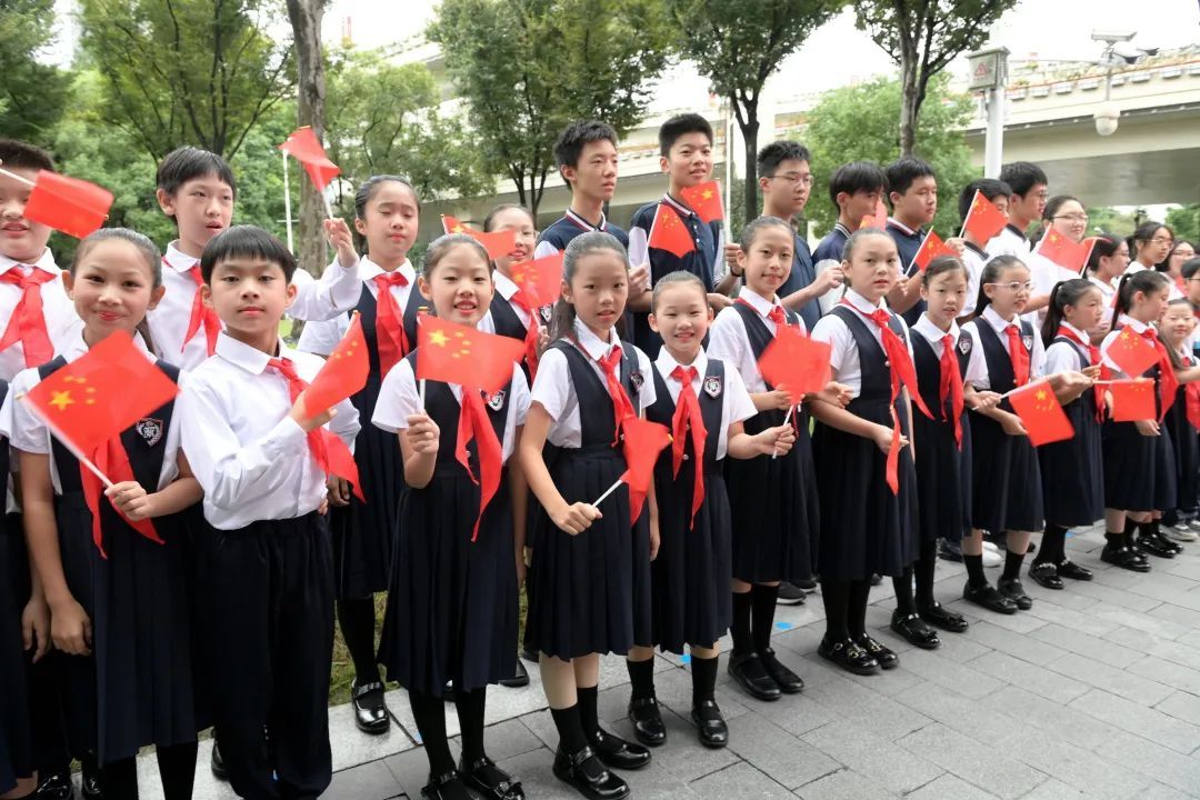 一面面崭新的五星红旗迎风招展,