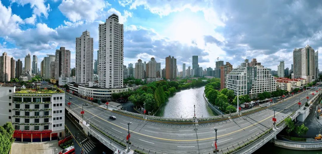 恒丰路桥,跨越苏州河,连接着静安的南北。桥下是粼粼苏河水,桥上是耀目中国红,成为苏州河上一道独特的风景。
