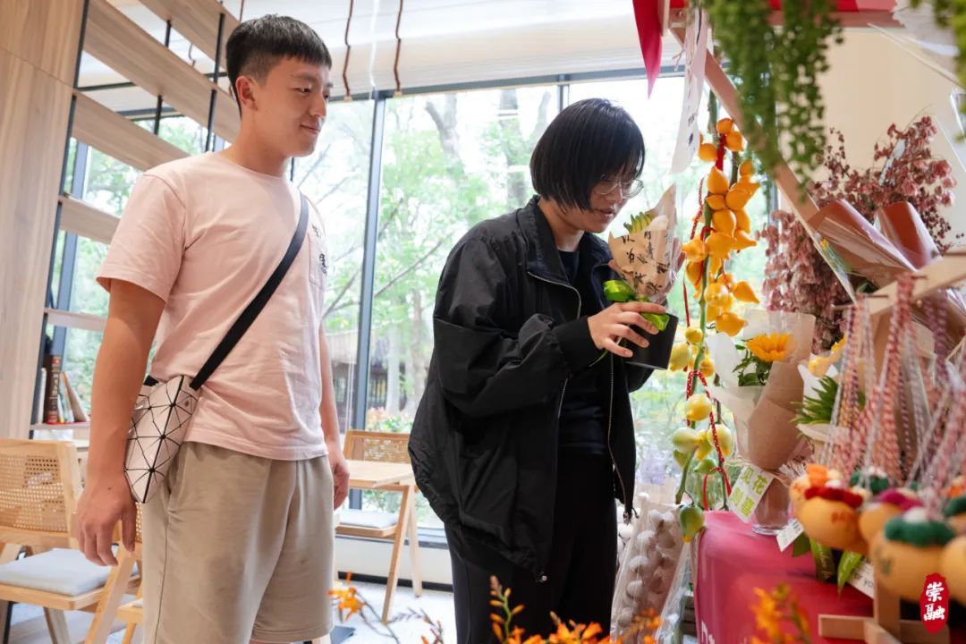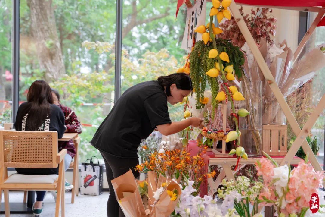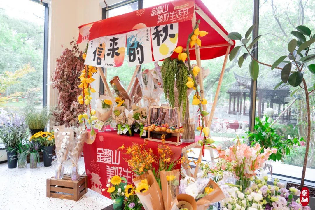 与土布展台相邻的花艺展台也人气颇旺。玫瑰、桔梗、向日葵、红掌花、大丽花等各类鲜花争奇斗艳,主办方将一些巧思与花卉结合,比如剑兰寓意事业步步高升;向日葵寓意学业“一举夺魁”;佛手则寓意“多福多寿”,吉祥的寓意配上美丽的花卉,市民游客纷纷表示,这波情绪价值“拉满”了。
