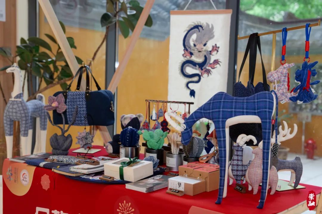 一旁由“布布瀛”工作室带来的“土布造物”崇明土布非遗展同样吸引游客驻足观赏。只见展台上摆满土布香囊挂件、土布花卉装饰品、玩具、笔袋、包包等土布产品,这些手工制品精致美观,造型生动,将土布与时下流行元素巧妙融合,向游客展示崇明非遗土布的魅力。
