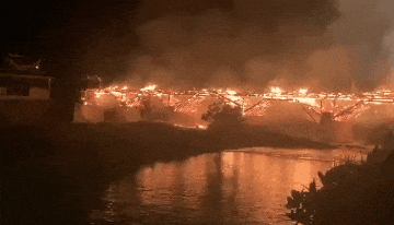 2022年8月6日,福建省宁德市屏南县万安桥着火,桥体坍塌焚毁。这是我国现存最长木拱廊桥,始建于宋朝,至今已有900多年历史。