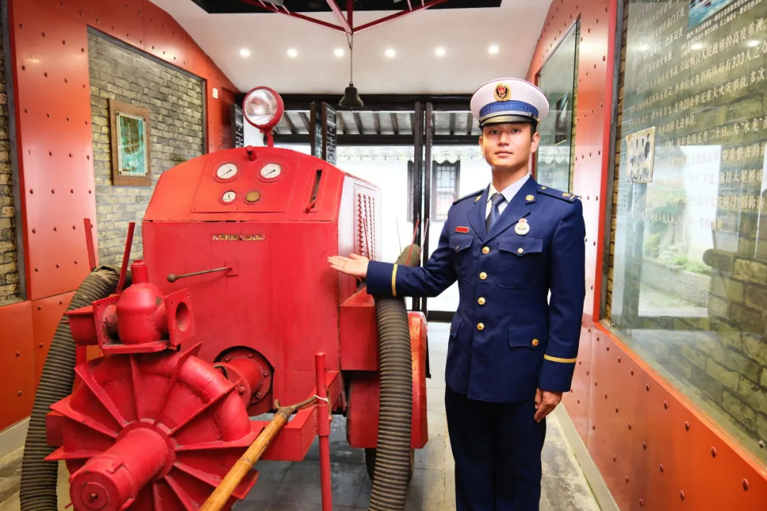推开红色的大门,映入眼帘的是大厅里摆放着的几大件旧时救火设备。有20世纪初出现的称作“洋龙”的手压式揿龙,有1937年抗战前的机械“泵浦”,还有1950年后一度使用的轮式救火车等。
