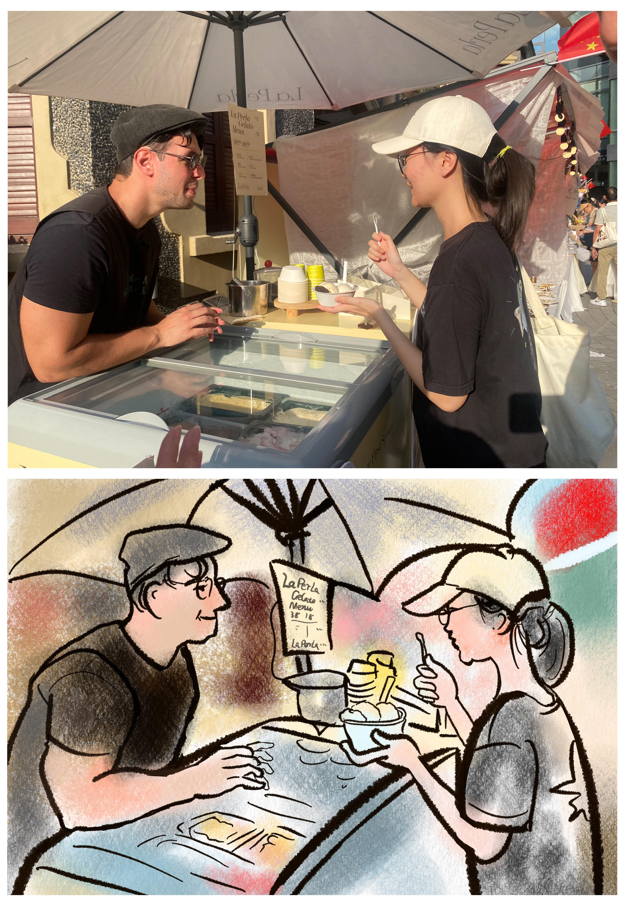 思南公馆实在太好逛了,从意大利帅哥手中接过冰淇淋的妹子饶有兴趣地端详着手中的美味。