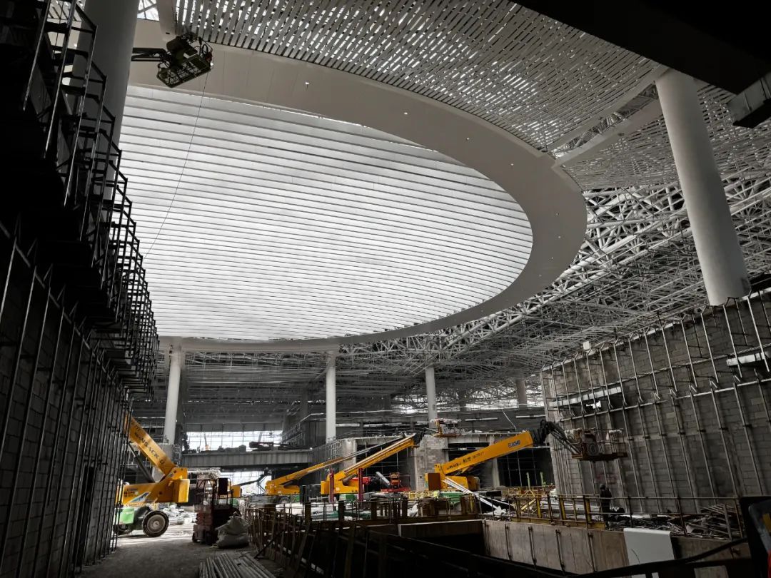 由铁四院、中铁二局、中铁二十四局联合体负责施工的上海松江站服务中心新建项目已进入扫尾阶段,现场安全负责人张业著表示,目前屋面玻璃顶已经安装完成,接下来的关键工作是室内装修和室外幕墙施工。内部墙面装饰工作正在紧锣密鼓地进行中,内装整体进度已完成75%。他信心满满地表示,将全力以赴,确保在今年年底能够保质保量地如期交付使用。