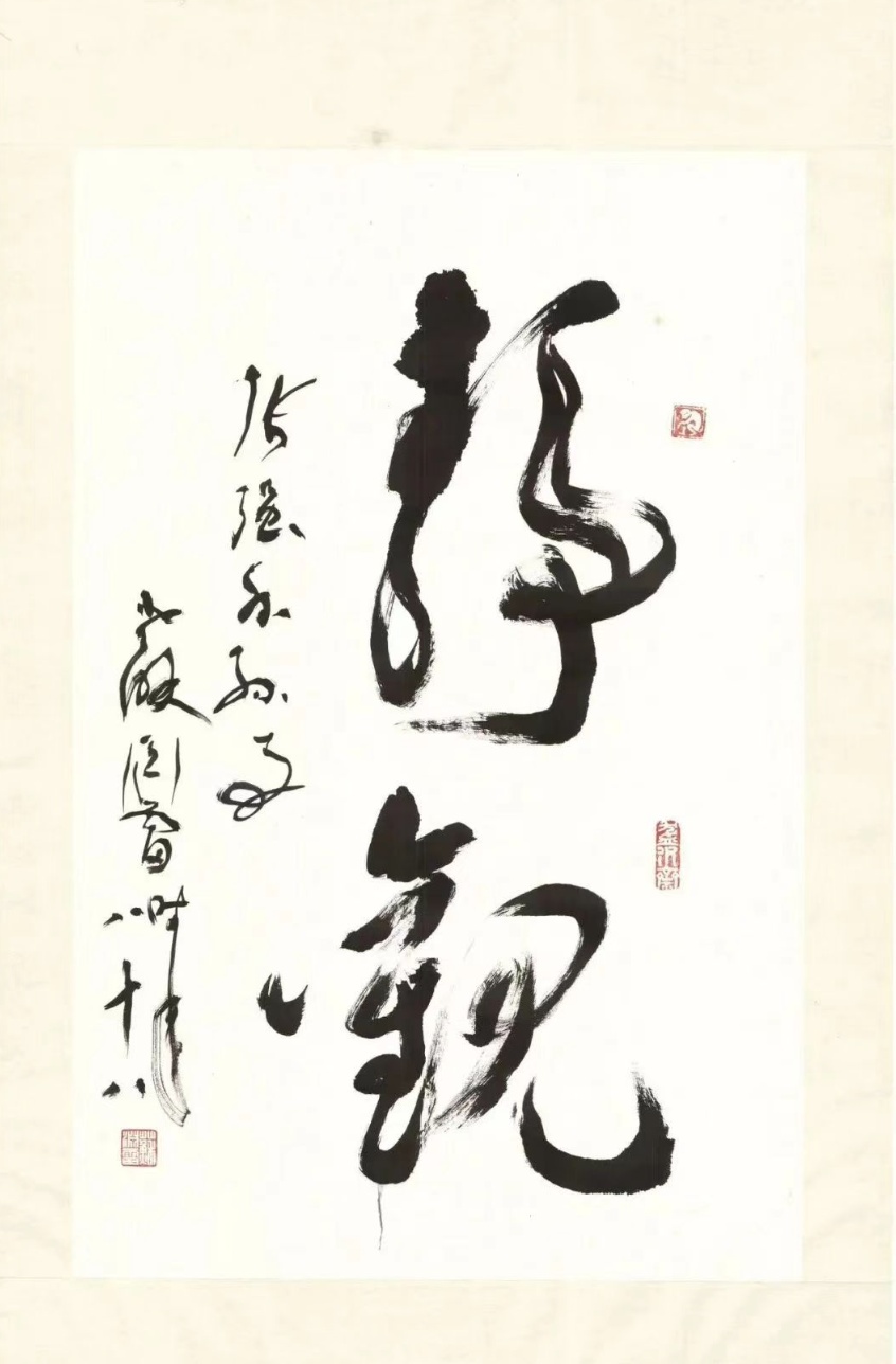 六十多幅作品中,有书法作品,也有山水画、工笔画。其中最为引人注目的是已故当代著名学者苏渊雷的草书作品《静观》二字。被学林艺界称为“诗书画三绝兼擅,文史哲一以贯之”的苏渊雷,不仅有着早年投身革命的经历,而且是位学识渊博、著作等身的学人。他的书法用笔畅达遒劲,气息高古朴茂,章法疏密有自,展示了“书之妙道,神采为上”的境界。