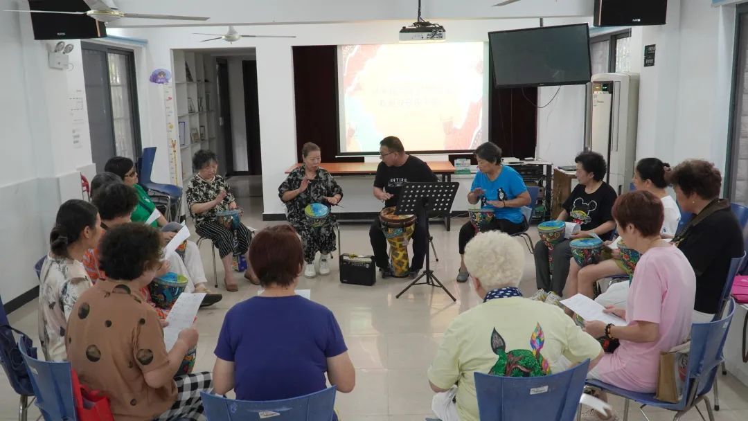自今年9月启动后,非洲鼓音乐疗法以认知障碍风险人群为主要服务对象,每周于固定地点开展1-2次非洲鼓团体干预活动,预计共为期6周,丰富老人的感知体验,增进老人与外界的互动,刺激大脑以实现认知障碍的预防和早期干预。