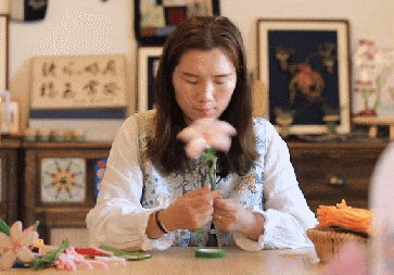 最后调整一下花型,一朵香水百合就完成了。