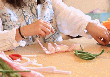 米色、粉色、绿色扭扭棒