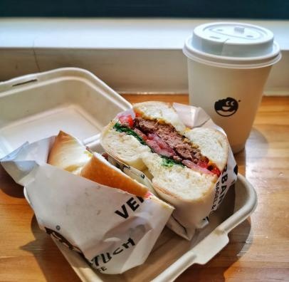 招牌安格斯牛肉贝果和玉兰花拿铁
