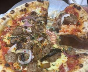 比萨均由个性十足的老板大叔亲手制作。我点了一份牛肉比萨,从出炉到上桌,仅几步之遥。热气腾腾的比萨散发着芝士与牛肉的诱人香气,上面点缀着多种菇类。我轻轻拿起一块,芝士还能拉丝,饼皮柔韧与浓郁的芝士完美融合,一口咬下,满足感油然而生。