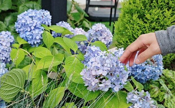 在园区的巷道中漫步,我发现了藏匿于翠绿枝叶间的莫兰迪色系绣球花。抬头望去,满墙的月季五彩斑斓,令人目不暇接。我深吸一口气,花朵的芬芳瞬间弥漫于鼻腔。随后,我在花店买了几朵鲜花。路边摆放着许多野餐桌椅,我随意找了个位置坐下,开始享受这美妙的“拍照时光”。