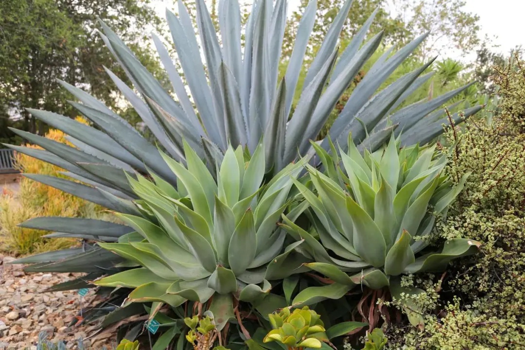 龙舌兰是天门冬科龙舌兰属的多年生草本植物,原产于美洲热带,尤其是墨西哥和美国德克萨斯州。其叶片基生呈肉质莲座状,先端具硬尖刺,花茎粗壮,圆锥花序大型。龙舌兰耐旱性强,适合在干燥环境中生长,对土壤要求不高,但排水性良好的沙质土壤最佳。