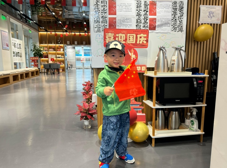 活动吸引了众多市民游客前来打卡拍照,小朋友们甜美的笑容与国庆红色主题氛围布置融为一体。