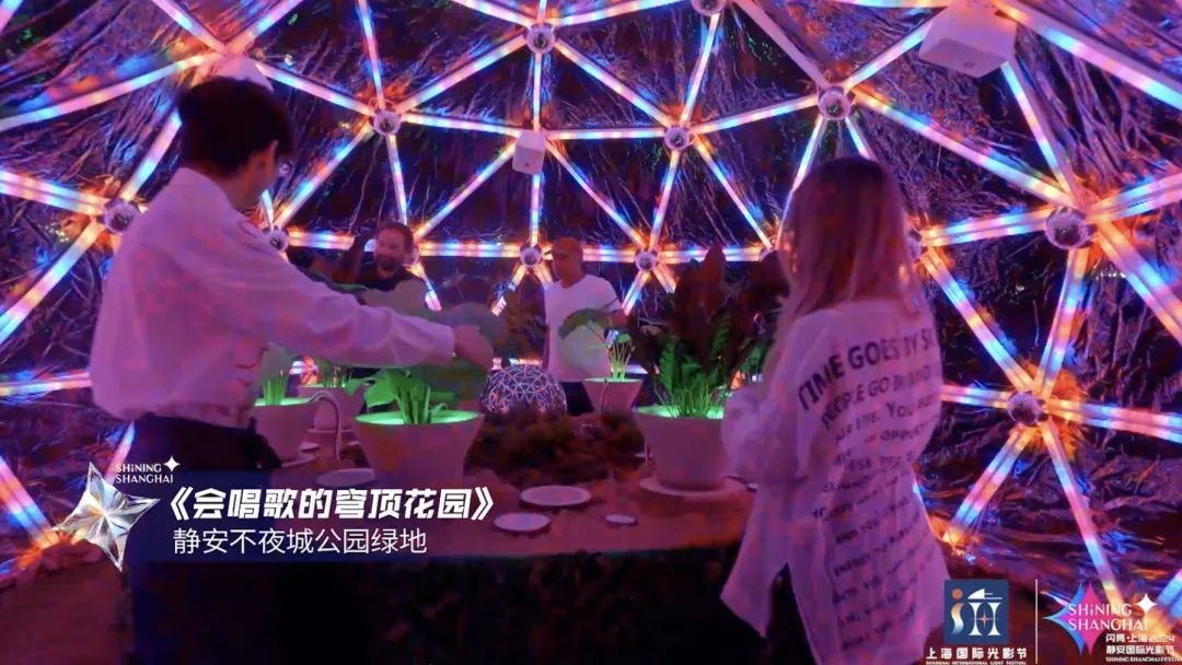 《会唱歌的穹顶花园》是本届静安国际光影节的特邀艺术家作品,是一个由来自法国艺术工作室带来的音乐秘境空间。