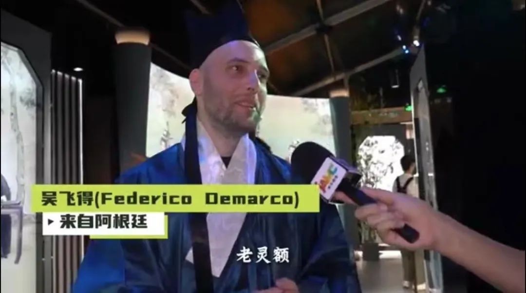“第一次参加这种沉浸式的活动,感觉很新奇!能把AI技术、中国传统文化,以及光影这些不同的元素结合在一起, 我觉得这是一个非常棒的体验。”体验了穿汉服、“穿越”到古代中国的阿根廷人吴飞得(Federico Demarco)告诉记者。