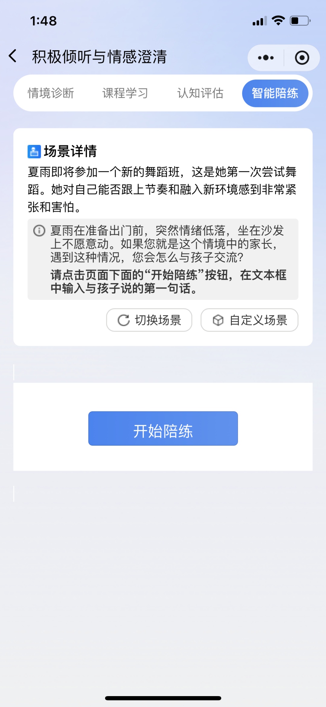 理论易懂,实践难行。面对家庭教育学习这一知行鸿沟,“知心慧语”智能陪练系统能利用大语言模型实现具有确定目的和行为模式的角色扮演,为每个家庭量身定制、动态生成训练场景,家长们可以在一个安全、无压力的环境中尝试和探索不同的亲子互动策略,并得到及时的反馈指导和有针对性的实践建议。在这里,学习绝不是纸上谈兵。