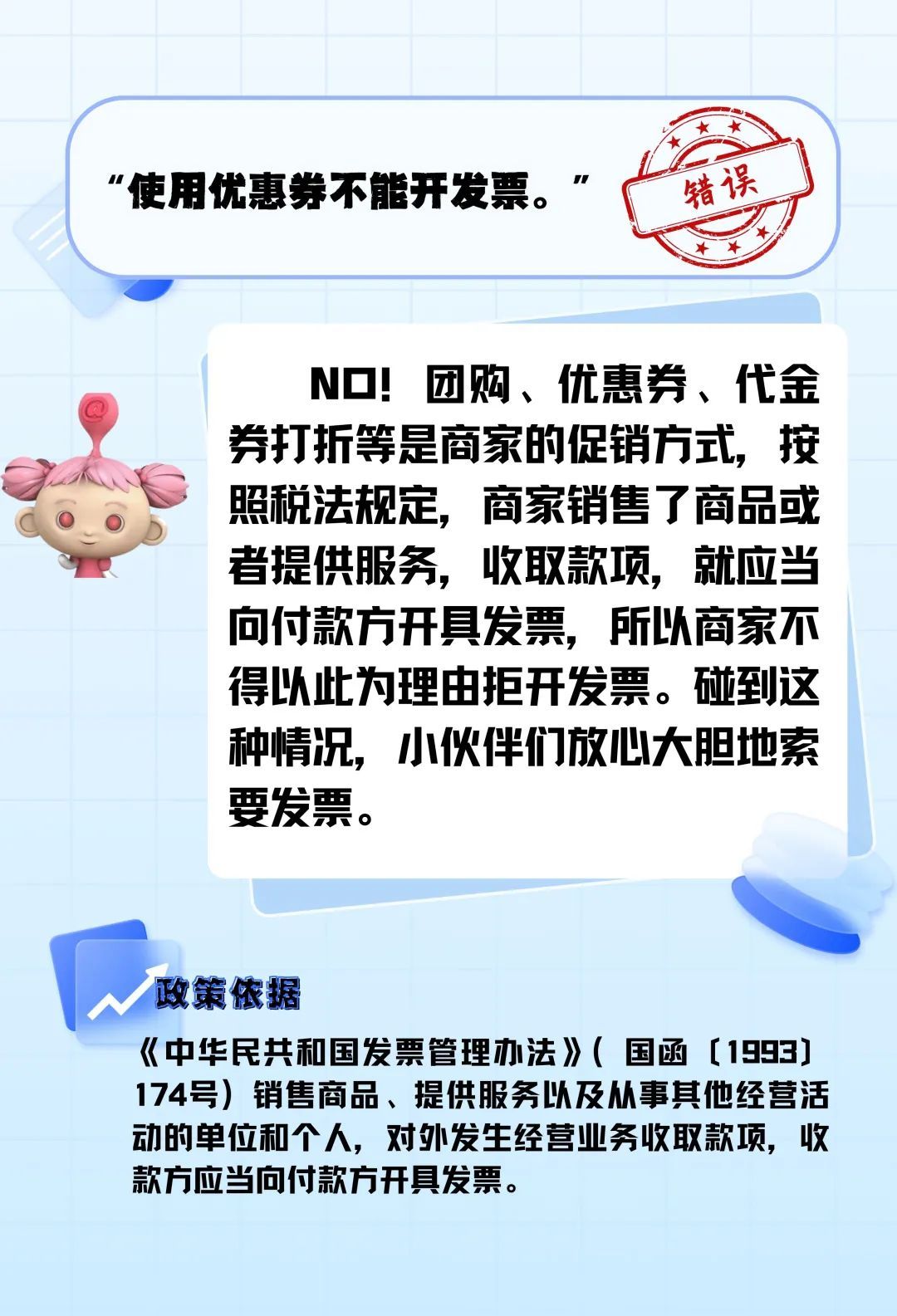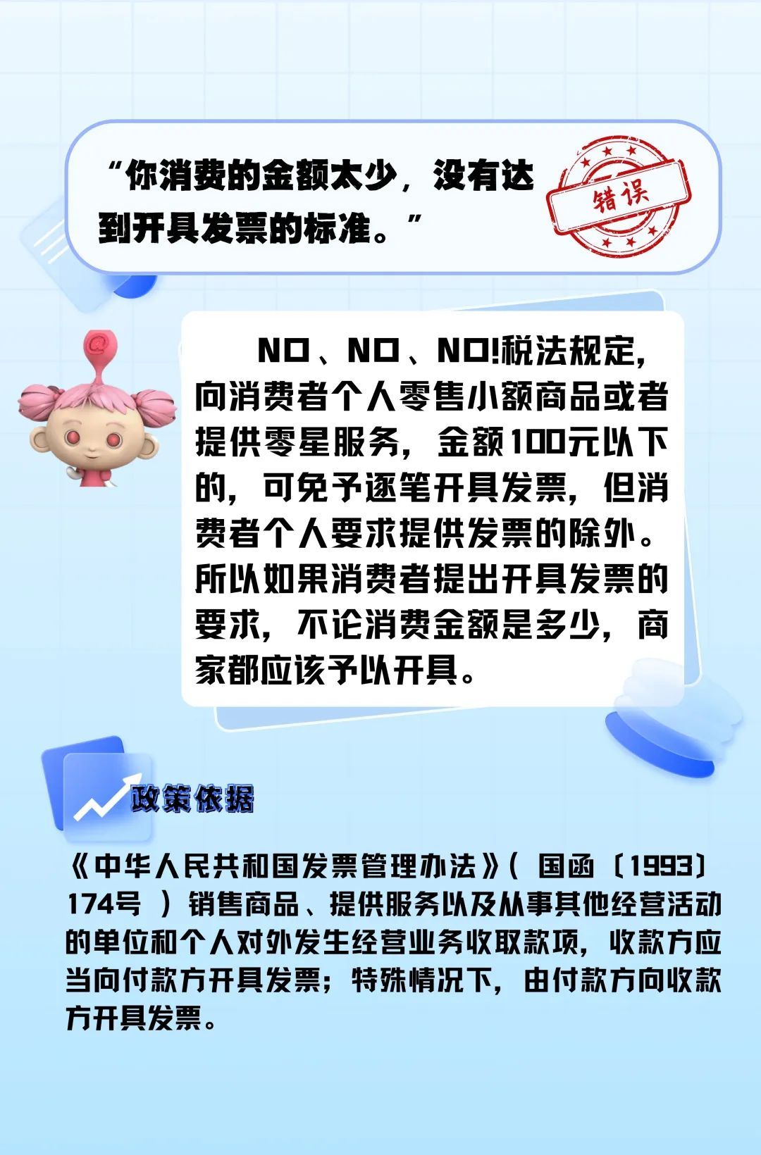 这些情形大家都记住了吗?消费之后向商家索要发票,是消费者的权利,向消费者提供发票是商家的义务。如果遇到商家拒开发票的情况,可以拨打12366纳税缴费服务热线,或者向当地税务机关举报哦。