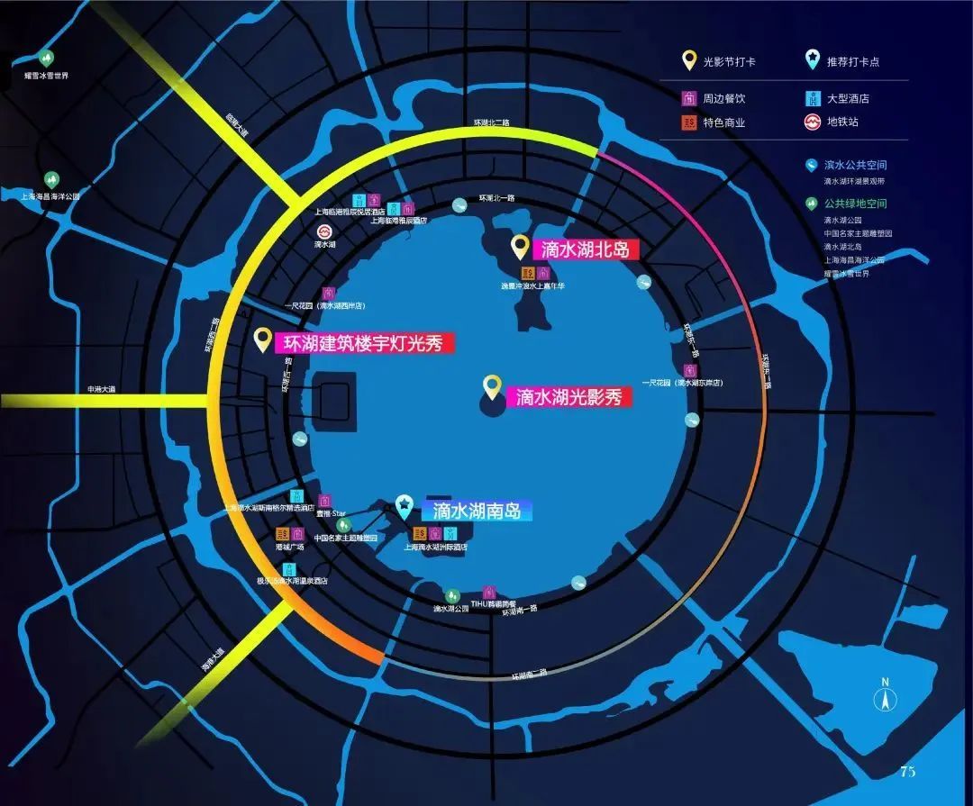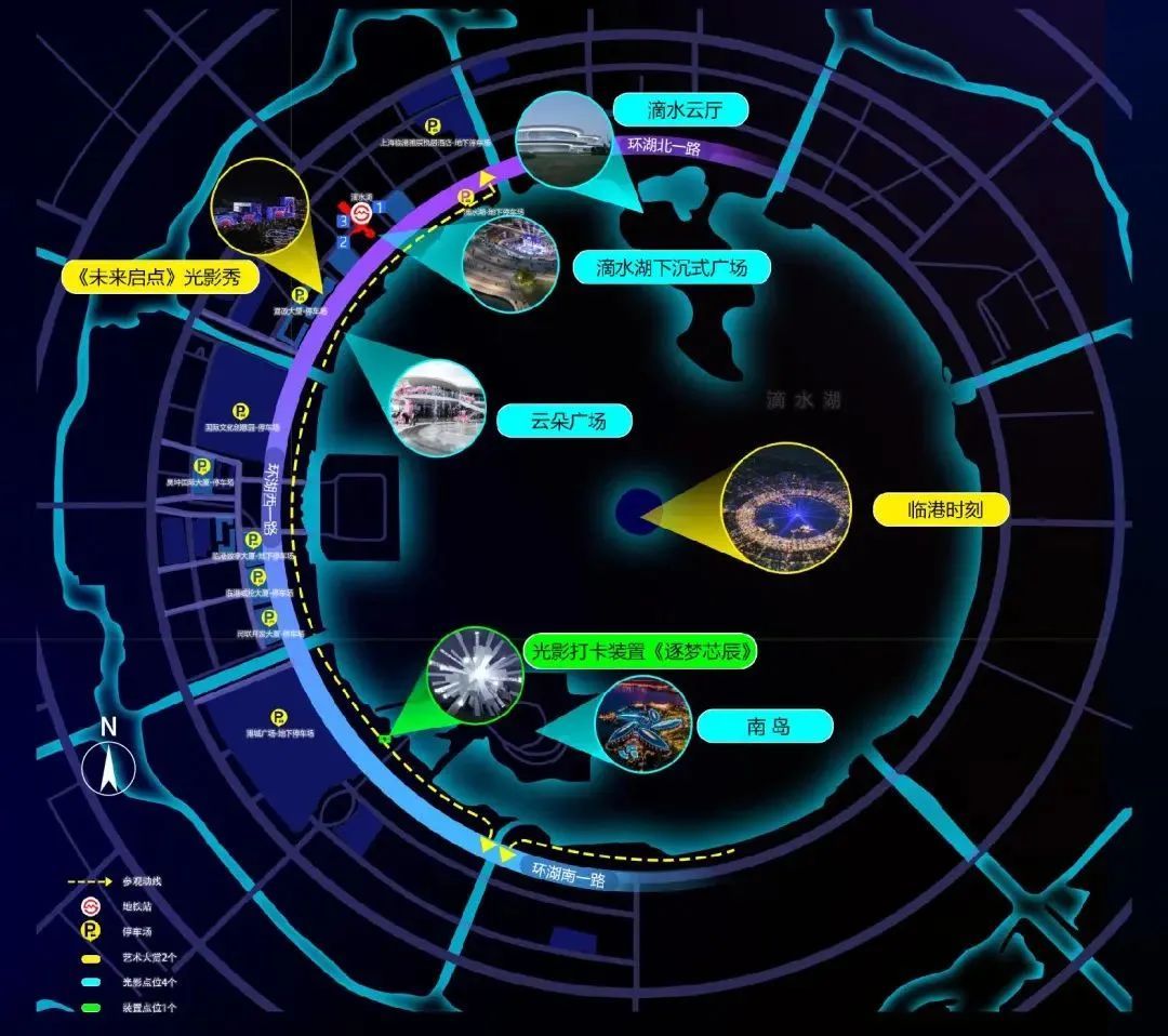 首届上海国际光影节临港新片区分会场系列活动以“临港时刻”为主题,采用“一湖三轴多点”的布局,将滴水湖广场及一环带滨水区域作为临港光影节主展区,打造“临港时刻”湖景光影秀。 滴水湖“临港时刻”光影秀以整个滴水湖为光影幕布,以湖心雕塑“水滴”为核心点,环湖泛光灯带勾勒出表盘形状,巧妙地将湖面化为巨大的时间装置。用光影交织成指针、用色彩描绘城市,随着指针的转动,从荣耀之环开始启始,光影顺时针逐步点亮整个滴水湖畔,点亮临港的璀璨瞬间。 秀演时间 活动期间每天19点滴水湖沿岸泛光照明将随着光影指针转动逐渐被点亮,每天19:30至21点的每个半点将有湖心灯光秀表演。自10月12日起每周六晚20:00,《临港时刻》光影秀将准时呈现。 360度全方位体验 临港分会场光影地图 滴水湖站下沉式广场 伴随着滴水湖秋日歌会的悠悠歌声,欣赏滴水湖“临港时刻”光影秀的同时,兴港城的裸眼装置将播放同主题裸眼3D视觉秀,为观众带来视觉震撼的同时,夜间也将与“临港时刻”光影秀联动秀演。 裸眼3d屏幕 滴水湖北岛 位于北岛的滴水云厅设计理念引入“湖中云,云中城”的概念,在光影的映衬下,建筑形成云朵流动般的视觉效果。从滴水云厅回望,欣赏滴水湖金融湾标志性建筑“荣耀之环”的夜景景观。 滴水云厅 一尺花园(滴水湖东岸店) 湖景激光秀、沿湖景观带和建筑楼宇灯光秀,在双子塔正对面的一尺花园东岸店一览无余,从日落追到夜幕降临,来一场惬意的追光之旅。 滴水湖南岛 南岛中现代建筑与传统园林相结合,依托风雨廊桥、假山瀑布等苏式园林景观,围绕“千里江山,梦里桃源”展开,与“临港时刻”湖景光影秀相互呼应,演绎着别样的古典与现代融合之美。 南岛 朵云书院 站在朵云书院的巨大落地窗前,视野开阔,观众可以用上帝视角眺望光影秀,见证属于临港分会场的Magic Moment。 更多观看点位敬请解锁...... 光影秀不仅仅是视觉的享受,更是对城市脉动的感知。夜幕降临,湖畔灯火辉煌,光影与湖水交相辉映,营造出绚丽多彩的临港夜景。 临港时刻,用光影演绎城市跃动,用光影勾勒未来蓝图! 素材来源:@上海国际光影节