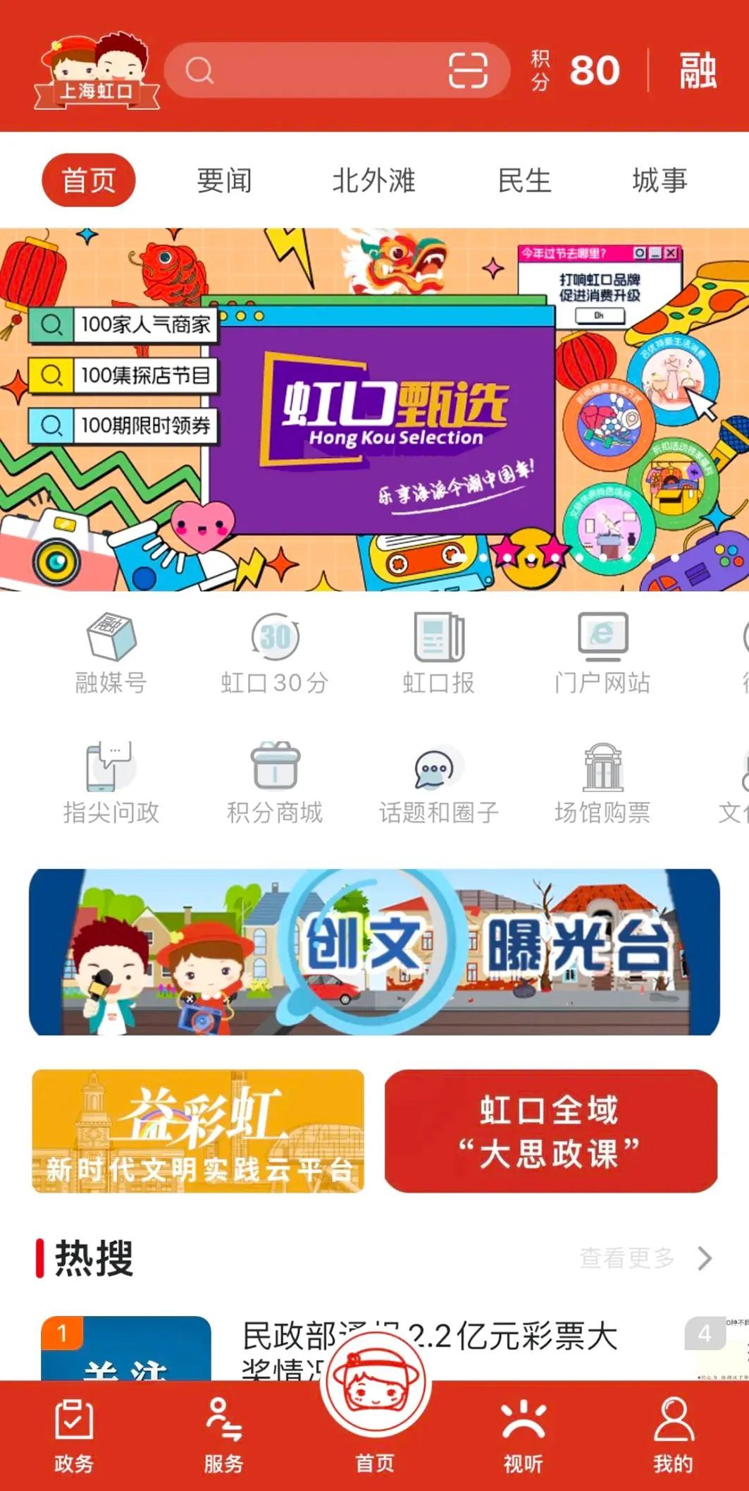 ②从APP客户端进入“虹口甄选”首页,拼手速领取电影票