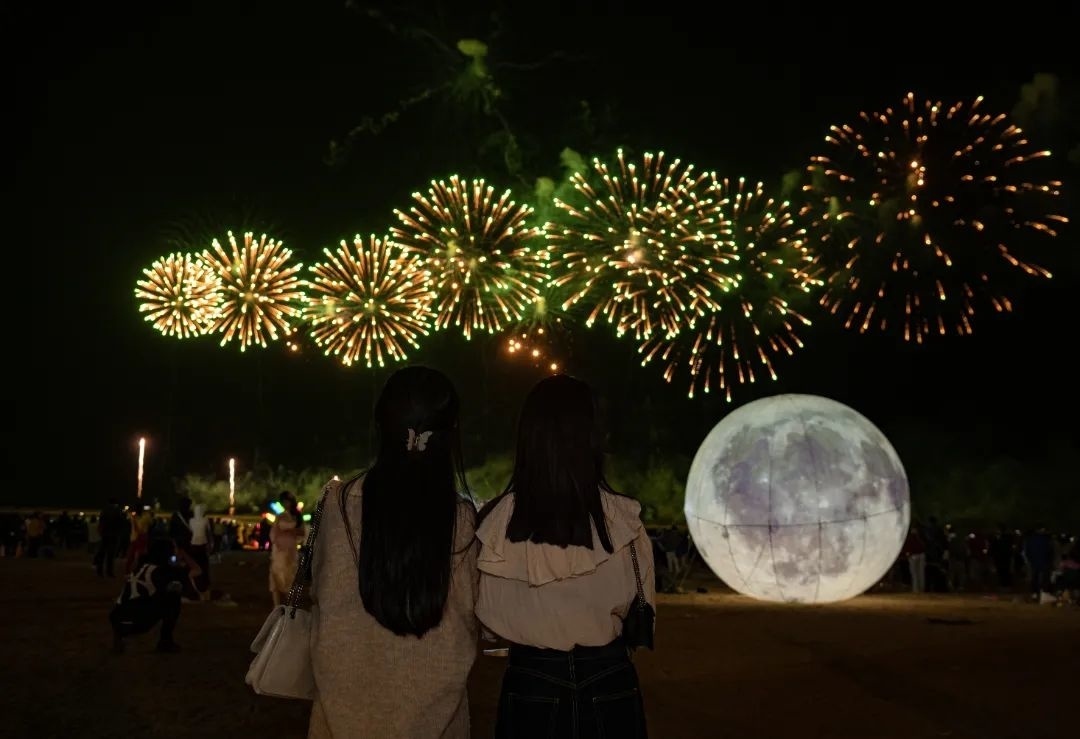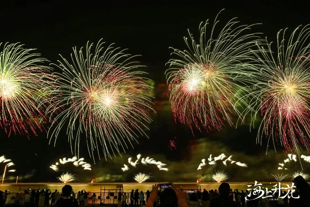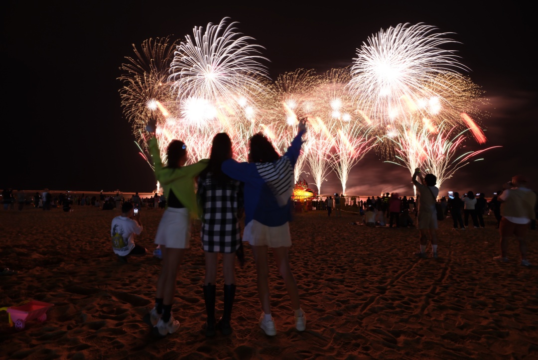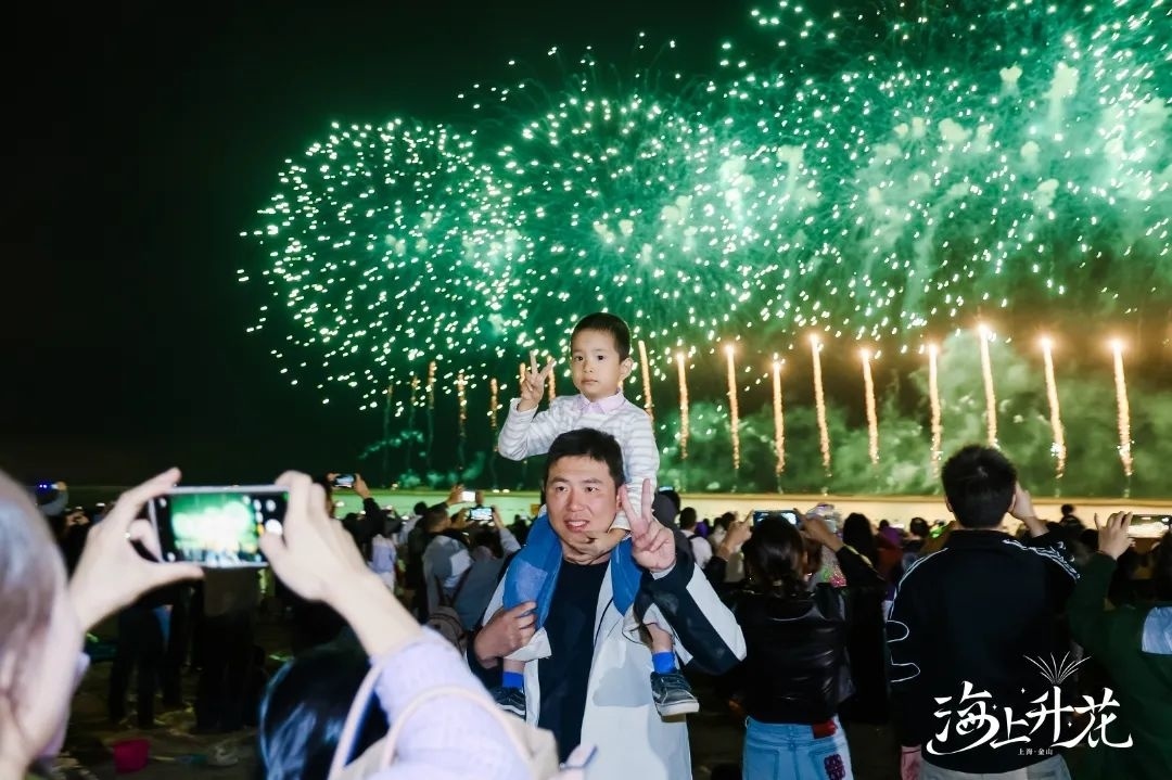 市民金淼说:“之前来金山城市沙滩看过烟花,身边的家人朋友都说很精彩,所以这次趁着十一假期带好朋友来看。”