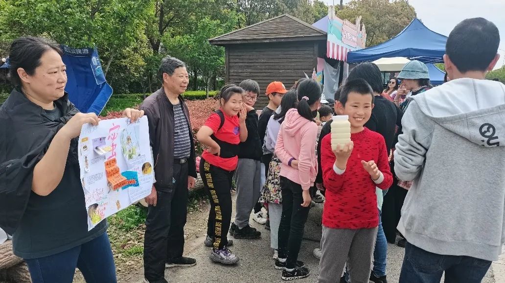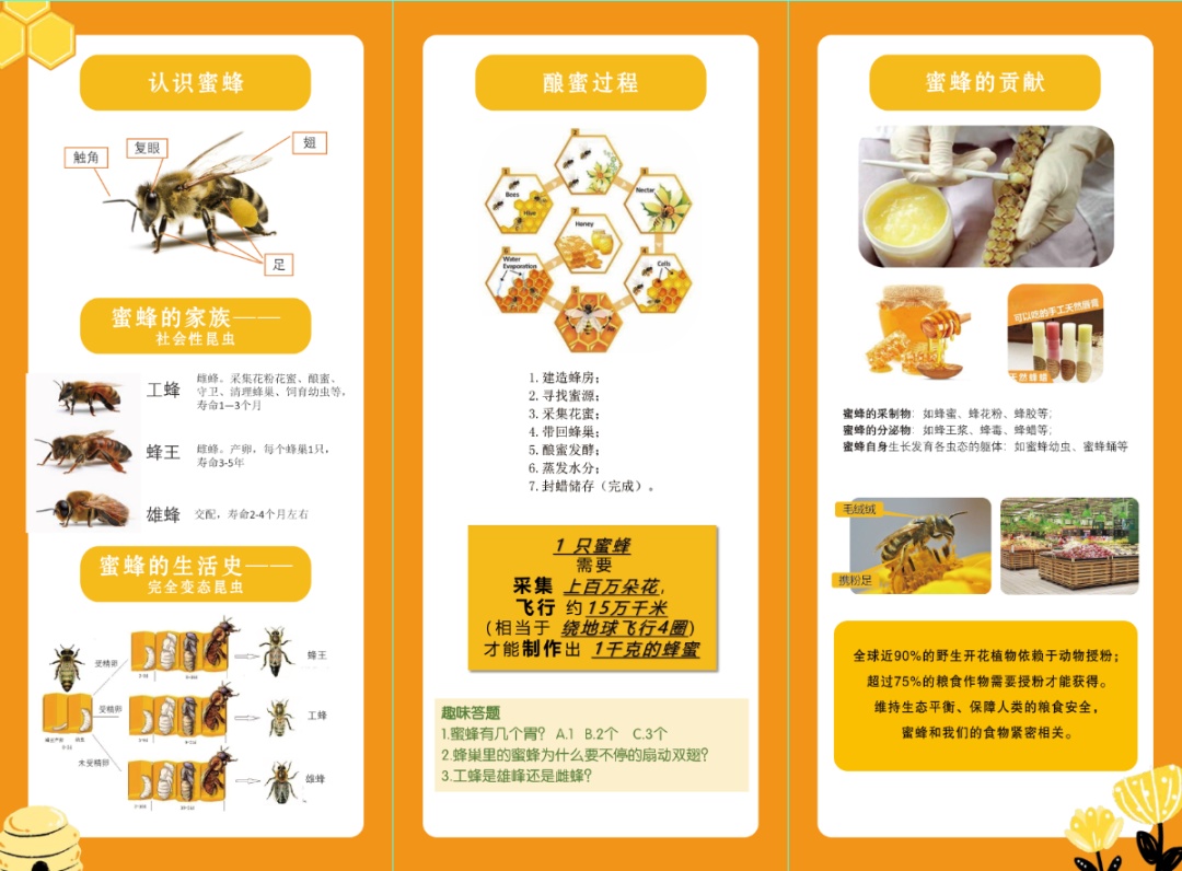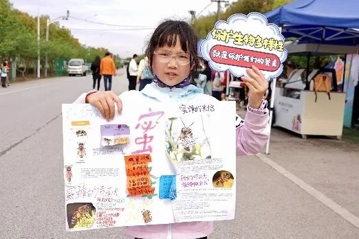 负责宣传的小伙伴们看到游人走过,都会友好地上前说明来意,向游人展示蜜蜂宣传页。游人也大多乐意与孩子们互动,驻足听一听孩子们的解说,或者跟随孩子来到摊位前一看究竟。家长们也投身其中,帮孩子们展示和宣传。一个多小时的时间很快就过去了,总计发出了近一百份宣传册。