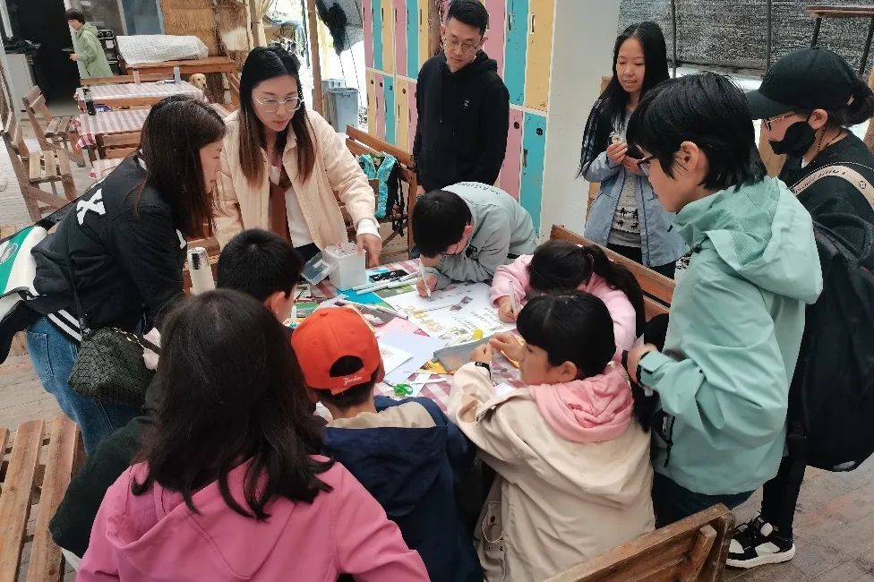 老师先请同学们自由组合成三组,选组长,起组名,这个过程旨在组织团队,建立团队认同感。随后老师分发白纸、彩纸、马克笔等绘制工具,同时也给每组分发了一份蜜蜂的拓展资料。