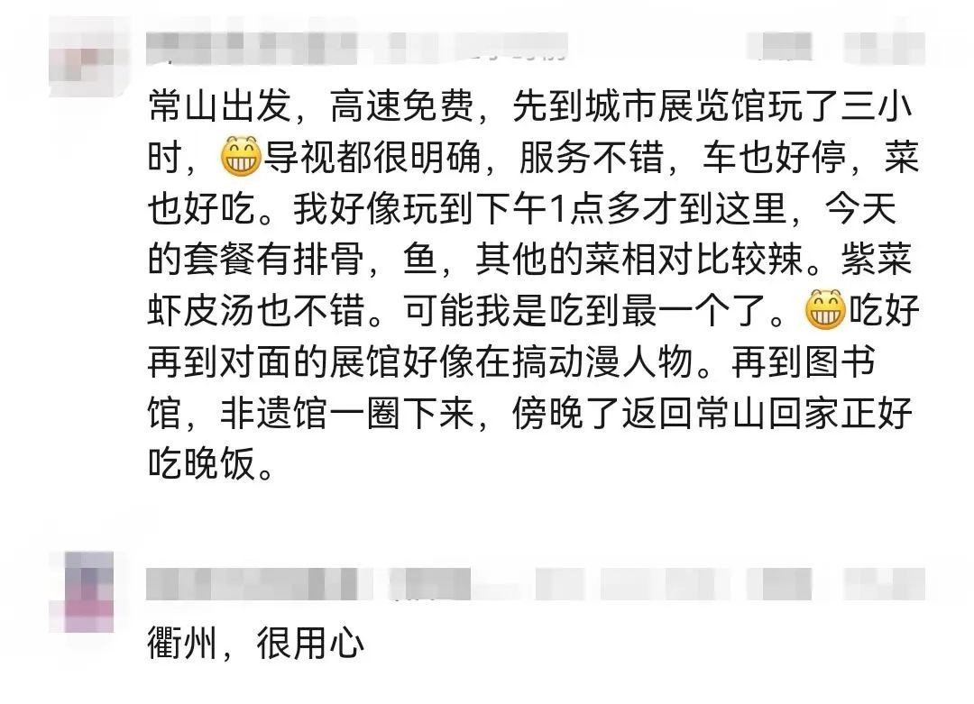 有网友点赞衢州的用心,还有网友直接在评论区发了自己的“实地测评”——“服务不错,车也好停菜也好吃……今天的套餐有排骨、鱼,其他的菜相对比较辣,紫菜虾皮汤也不错……”