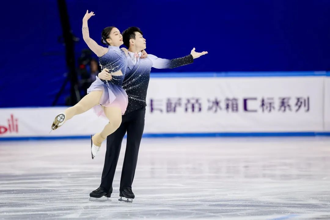 在冰舞自由舞比赛中,韵律舞比赛后暂列第四的中国组合任俊霏/邢珈宁凭借在自由舞中的出色发挥,得到了94.11的自由舞得分,并以两套节目151.94的总分反超至第三,登上了领奖台。