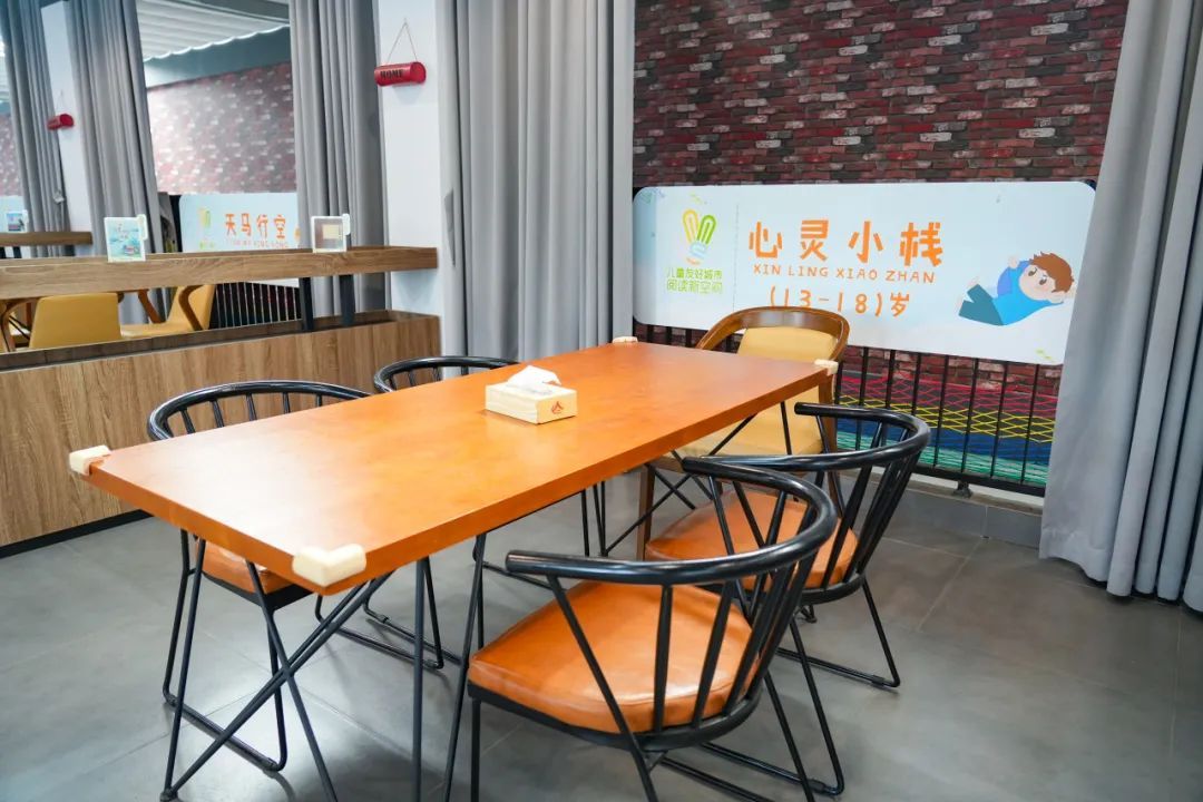 同时,为了不再将儿童阅读活动局限于书本,柘林镇儿童友好城市阅读新空间根据服务内容增设了“小林童议事堂”、“心灵小栈”、“天马行空”、“动动小手”四块功能区域,保障不同年龄段少儿的活动空间,让他们置身于一个充满活力、温馨的“儿童友好型”成长环境中,学玩兼顾,激发青少年无限的想象力和创造力,护航儿童心理健康,培养青少年“主人翁”意识参与社区治理。