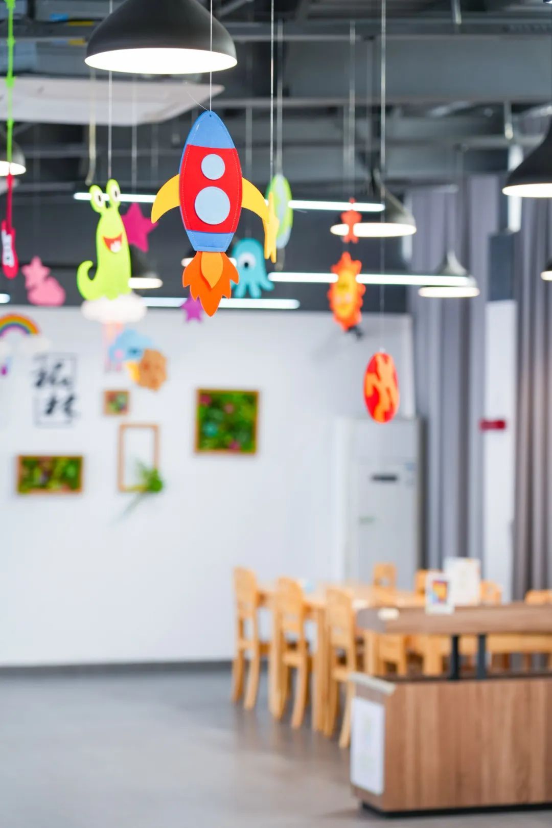 柘林镇儿童友好城市阅读新空间整体设计改造从儿童视角出发,整体色调为明亮活泼的蓝、橙、绿色,桌椅尺寸、阅读灯光、安全保障等均根据儿童习惯进行设计,并增设各类趣味照明设施及童趣摆件,让人倍感温馨舒适。